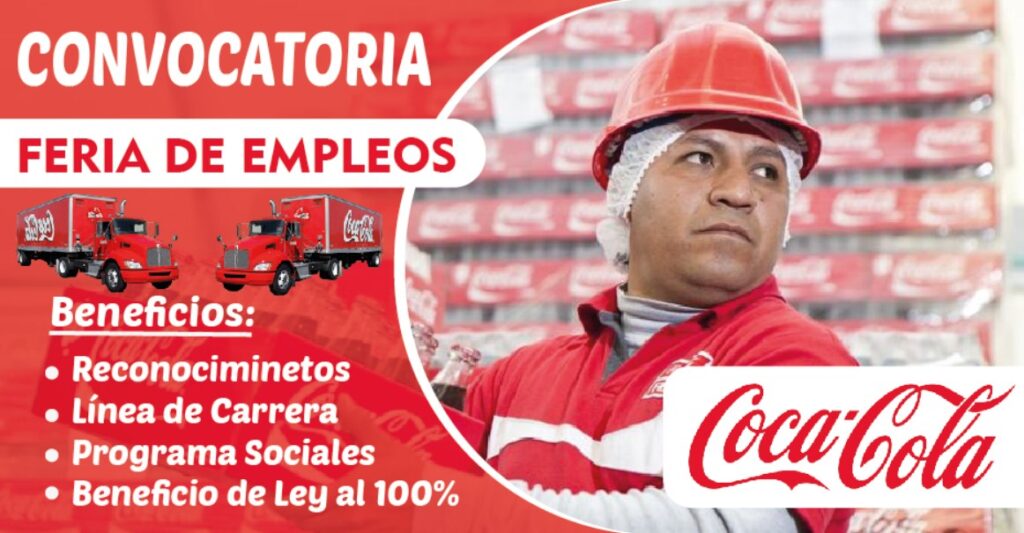 La compañía Coca-Cola ahora anuncia nuevas vacantes laborales para sus numerosas tiendas o almacenes, y cada año va en aumento sus ventas que genera. Trabajamos constantemente para lograr un alto nivel de reconocimiento para nuestros productos y por esa razón; pretendemos ampliar la presencia de nuestra marca.
