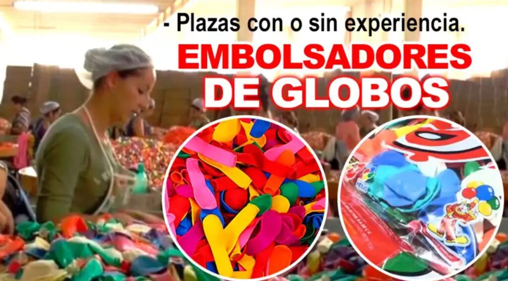 Existen diferentes oportunidades de trabajo, en esta ocasión estamos solicitando personal para empacar globos desde casa, no se requiere estudios y toda persona es apta para trabajar en nuestra empresa. Puedes solicitar aun sin tener experiencia ya que recién estamos iniciando este gran proyecto; beneficiando a muchos desempleados actualmente, y puede aprovechar una de estas ofertas de trabajo.